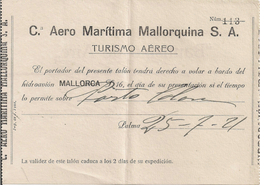 Con gran ánimo de los fundadores de esta empresa, sale en la prensa local del Sábado 26 de Marzo de 1921, la siguiente convocatoria. Compañía Aero-Marítima Mallorquina. Se convoca a los señores